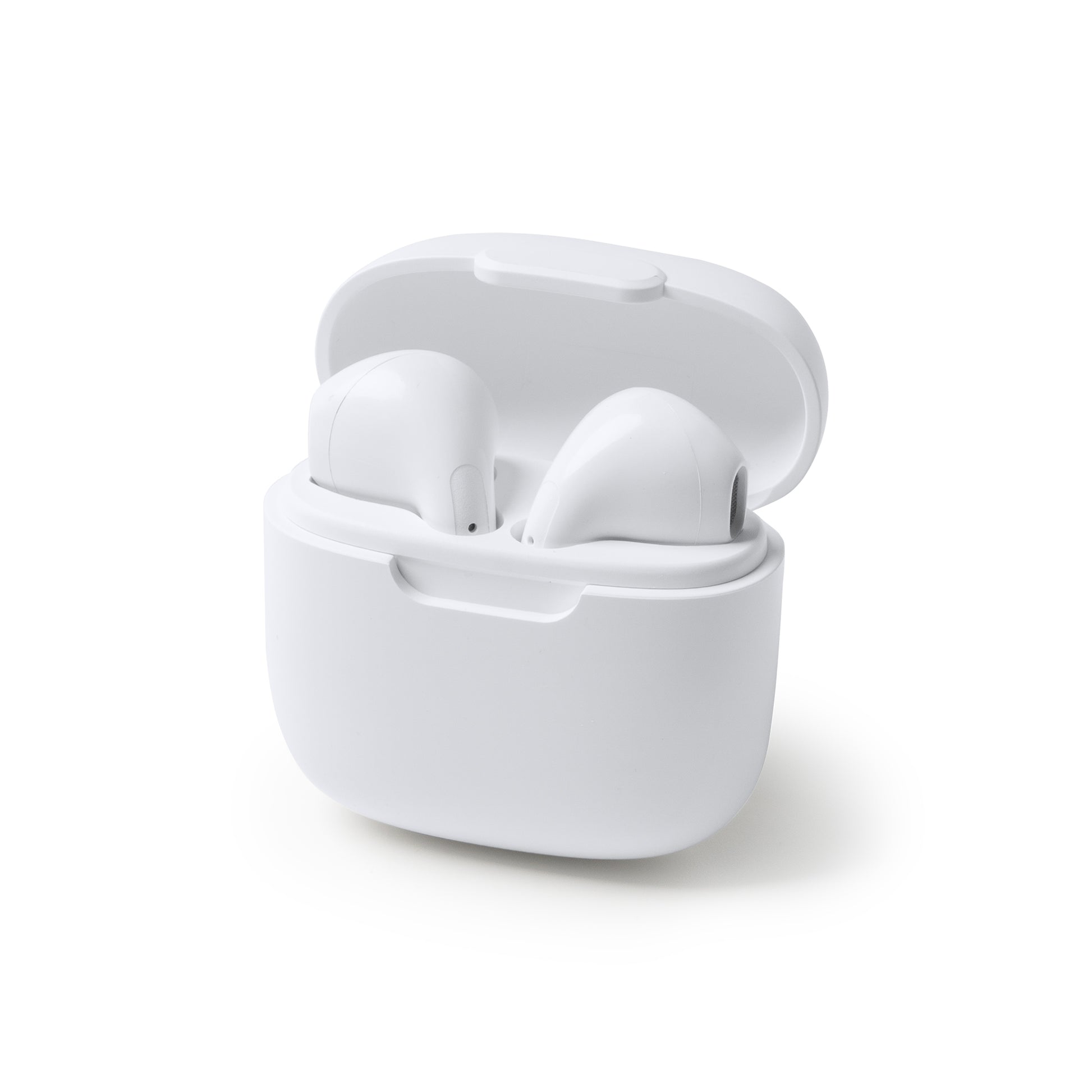 Écouteurs sans fil avec étui de chargement. Panneau de commande intégré avec technologie tactile. Fonction mains libres. Batterie rechargeable avec connexion de type C. Câble fourni. Présentation en boîte design.